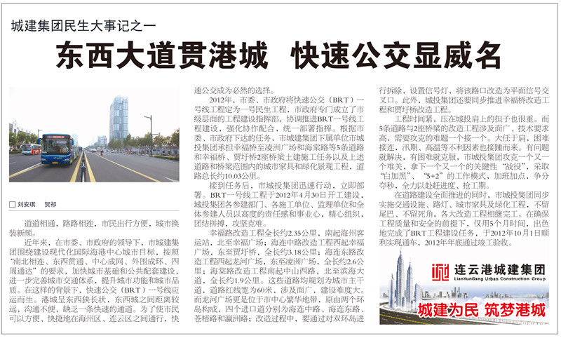 城建集團(tuán)民生大事記之一 “東西大道貫港城 快速公交顯威名”