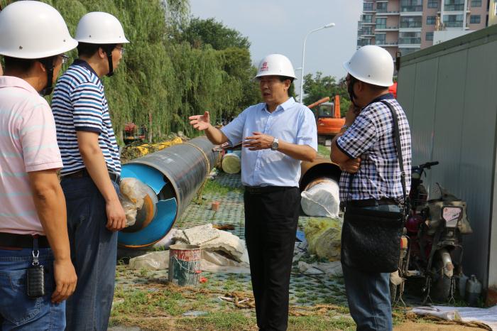 戚總首先調(diào)研了新海電廠連接線工程,該項(xiàng)目為確保今年冬季西部城區(qū)按時(shí)供熱,正在緊鑼密鼓施工。戚總詳細(xì)了解現(xiàn)場(chǎng)施工流程,并對(duì)項(xiàng)目進(jìn)度、質(zhì)量和防暑降溫工作,做了具體指示。