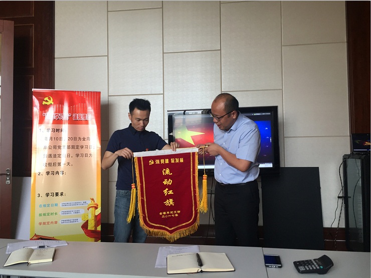 為更好的加強(qiáng)金海岸公司全體黨員的使命感、榮譽(yù)感和責(zé)任感,8月10日下午金海岸黨支部舉行了“強(qiáng)黨建 促發(fā)展”流動(dòng)紅旗評(píng)比活動(dòng)授旗儀式。