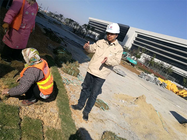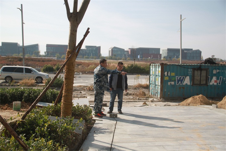 --金海園林工程管理一線的張永路、李啟德,全力做好施工現(xiàn)場各項工作,加快推進西鳳凰山公園、連云新城辦公樓租賃B1-B3、A5-A6等綠化項目工程進度。