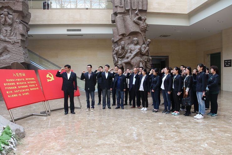 參觀結束后,劉家軍書記帶領全體人員,面對黨旗莊嚴宣誓。鏗鏘有力的宣誓聲響徹大廳,現(xiàn)場所有人都深受感染,在重溫入黨誓詞的過程中感受到了初心與使命之重,感受到了作為一名黨員砥礪前行、繼續(xù)奮斗的歷史召喚和時代責任。