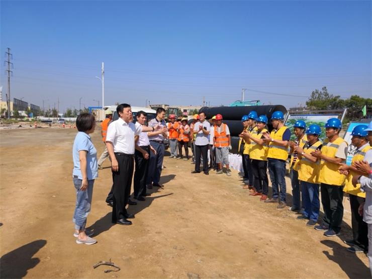 在中華西路西延工程現(xiàn)場,陳書軍書記一行詳細(xì)了解項(xiàng)目建設(shè)狀況、工程作業(yè)時間,以及現(xiàn)場防暑措施、職工生活工作等情況。陳書軍書記為工人們發(fā)放防暑降溫用品,感謝他們?yōu)樘嵘鞘衅焚|(zhì)做出的貢獻(xiàn),并叮囑大家要注意安全、注意身體。同時,他要求相關(guān)部門、施工單位在高溫酷暑下要格外注意施工安全,合理安排好工人們的作息時間和生活,認(rèn)真落實(shí)防暑降溫措施,在確保工程安全的前提下,抓好工程進(jìn)度,嚴(yán)控工程質(zhì)量。
