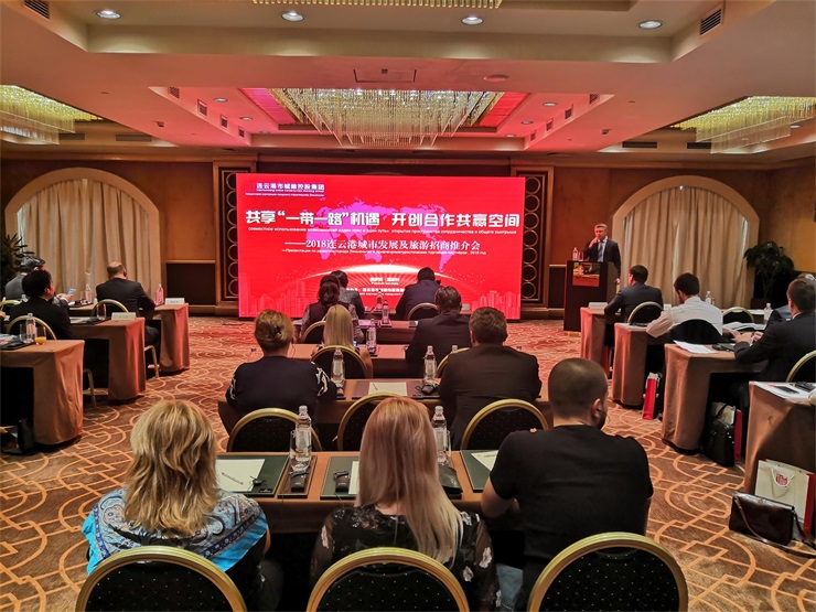 為響應(yīng)“一帶一路”倡議,落實市委市政府“高質(zhì)發(fā)展、后發(fā)先至”戰(zhàn)略部署,拓展連云港發(fā)展新空間,全面提升連云港城市品牌知名度。10月15日上午,城建控股集團招商團在俄羅斯首都莫斯科舉辦“共享一帶一路機遇、開創(chuàng)合作共贏空間”—2018連云港城市發(fā)展及旅游招商推介會。江蘇省商務(wù)廳駐俄代表陳沖特邀出席此次活動。俄羅斯國家杜馬議員康德拉鑫.葉甫蓋尼. 瓦列里耶維奇,俄羅斯聯(lián)邦政府烏里揚諾夫斯科州駐莫斯科副主任列夫秦科.鮑里斯.弗拉基米爾諾維奇,莫斯科州文化部副主任維克多利亞.菲納基諾娃,俄中友協(xié)第一副主席嘉麗娜.庫利科娃,白俄羅斯莫吉廖夫州投資署長亞吉莫夫.葉普蓋尼.阿納多里耶維奇及40多家政府部門、相關(guān)企業(yè)的代表參加推介會。