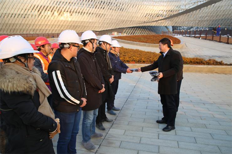 在項目現(xiàn)場,李廣春主席代表集團黨委和工會向工作在一線的職工表示慰問,感謝大家為集團發(fā)展付出辛勤汗水,并向奮戰(zhàn)在一線的職工送上棉服、棉帽、手套等防寒保暖用品。李廣春主席叮囑大家,天氣寒冷,大家工作十分辛苦,一定要注意保暖,保重身體,并要牢固樹立安全意識,確保安全生產(chǎn)和身體健康。