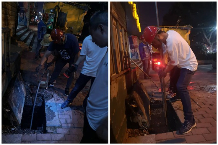 6月17日晚20:30接市民反映,朝陽路中醫(yī)院對(duì)面港利小區(qū)南側(cè)人行道上污水遍地橫流,城市排水公司立即組織黨員先鋒隊(duì)趕往現(xiàn)場(chǎng),據(jù)了解,該地處居民區(qū)且有多家飯店,污水主管道年久未疏通,大量油垢導(dǎo)致污水主管堵塞,污水漫溢,惡臭難聞。雖然此處不在我公司管轄范圍,但事關(guān)市民便捷出行,公司迅速組織黨員先鋒隊(duì)趕赴現(xiàn)場(chǎng),摸排管網(wǎng)情況、制定疏通方案,調(diào)派人員、車輛,實(shí)施清淤作業(yè)。