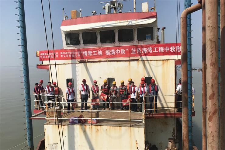 在藍(lán)色海灣基礎(chǔ)工程項(xiàng)目海上施工現(xiàn)場,工人們感謝的說道:“感謝組織沒有忘了我們這群一線工人?!毙⌒〉囊粔K月餅,簡單的一次席地而談,讓堅(jiān)守在一線的廣大職工真真切切地感受到組織的關(guān)心和重視,大家紛紛表示一定會堅(jiān)守崗位,優(yōu)質(zhì)、高效的完成藍(lán)色海灣基礎(chǔ)工程目標(biāo)任務(wù),把組織給予的關(guān)懷轉(zhuǎn)化為勇往直前、努力工作的源動力,積極擔(dān)當(dāng)責(zé)任,用實(shí)際行動助力新城開發(fā)建設(shè),實(shí)現(xiàn)新城藍(lán)色夢想!