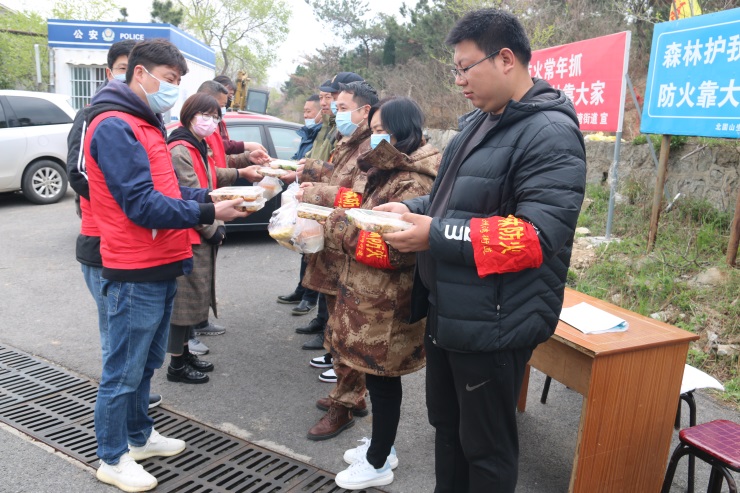 活動中參加活動的志愿者一同延北固山棧道重要地段進行巡查,尋找可能存在的安全隱患,并向在山上散步的游客發(fā)放傳單,倡議大家健康文明、勤儉節(jié)約、綠色環(huán)保、平安和諧過清明。活動最后,黨員志愿者慰問了安全執(zhí)勤的社區(qū)護林人員,向他們發(fā)放了慰問品并一起進行了合影。