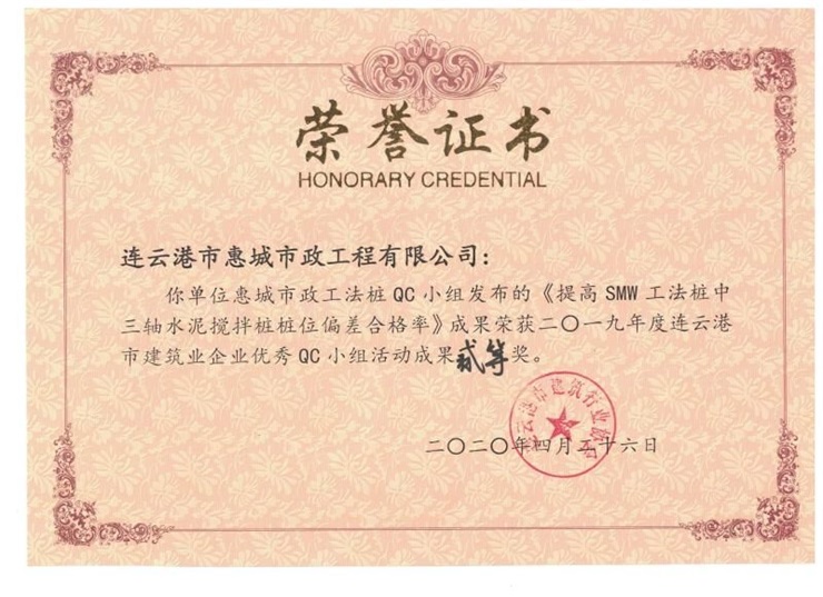 近日,從連云港市建筑業(yè)協(xié)會傳來喜訊,建工集團(tuán)惠城市政通過前期充分準(zhǔn)備,參評的3項活動成果均榮獲獎項。由公司技術(shù)骨干邱楊發(fā)布的《提高SMW工法樁中三軸水泥攪拌樁樁位偏差合格率》、晏翰林發(fā)布的《提高蒸汽管道拼接焊縫外觀質(zhì)量》均獲得二等獎,陳厚全發(fā)布的《提高橋梁橡膠支座安裝合格率》榮獲三等獎 。