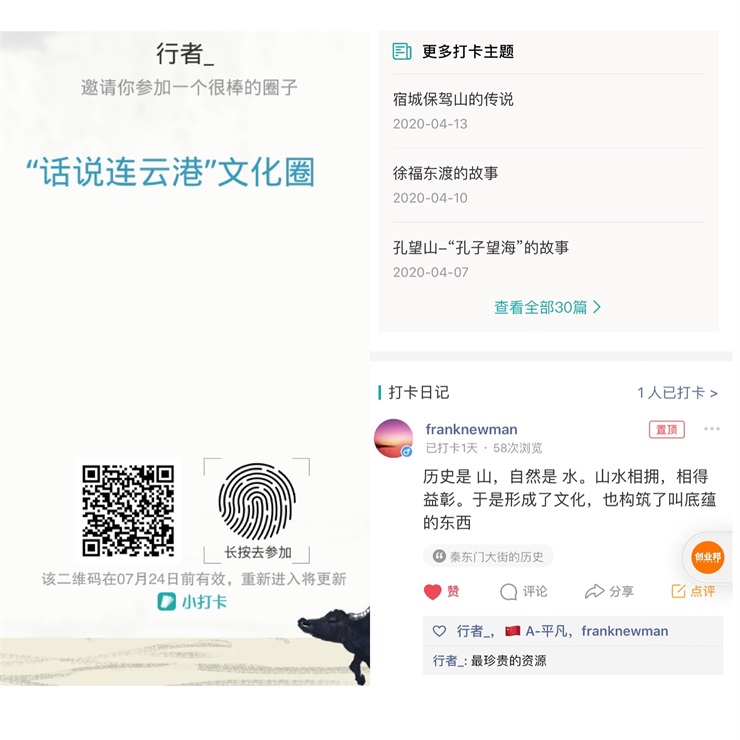 在“互聯(lián)網(wǎng)+大數(shù)據(jù)”大環(huán)境下,網(wǎng)絡(luò)媒體已成為信息傳播的首要陣地。西游文旅積極尋找并嫁接微信小程序,創(chuàng)建“話說(shuō)連云港”文化圈,實(shí)現(xiàn)西游文化、連云港特色旅游和歷史文化的線上推廣,同時(shí)對(duì)小程序流量進(jìn)行引流并轉(zhuǎn)化為“私域流量池”。用戶只要輕輕點(diǎn)開(kāi)小程序,便可進(jìn)入文化圈,隨時(shí)隨地了解連云港歷史、旅游、傳統(tǒng)文化等相關(guān)內(nèi)容,并進(jìn)行互動(dòng)閱讀、交流打卡。