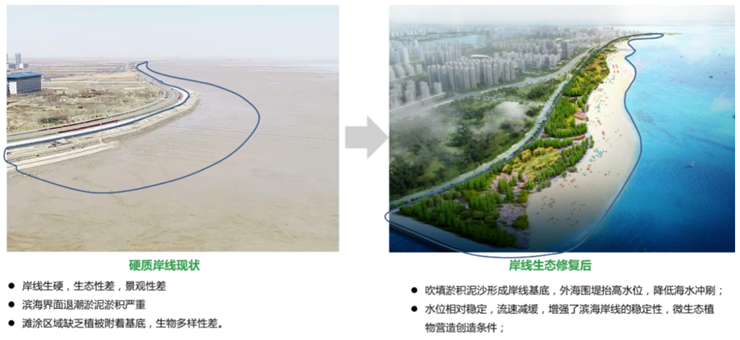 岸線修復(fù)工程位于連云港市區(qū)北部,規(guī)劃的連云新城防潮大堤東北及臨洪河口以東水域,東側(cè)毗鄰連云港港主港區(qū),北側(cè)面向黃海并與秦山島遙遙相望。該工程結(jié)合場地的自然環(huán)境條件和城市發(fā)展需求,采用“一區(qū)一帶三主題段”的景觀布局形式,通過連云新城生態(tài)濕地區(qū)建設(shè)和生態(tài)景觀帶建設(shè),對受損人工岸線進(jìn)行整治與修復(fù),強(qiáng)化鹽沼和岸線保護(hù),提升岸線穩(wěn)定性和自然災(zāi)害防護(hù)能力。