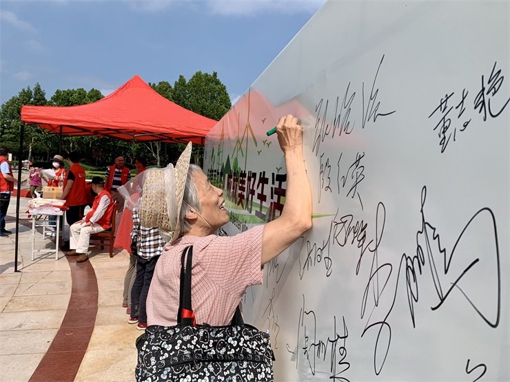 活動(dòng)現(xiàn)場(chǎng),志愿者們向市民發(fā)放環(huán)保宣傳冊(cè)和印有“締造美好生態(tài),成就美好生活”企業(yè)理念的環(huán)保袋,耐心講解環(huán)保小常識(shí),倡導(dǎo)大家從身邊點(diǎn)滴做起,自覺(jué)維護(hù)環(huán)境衛(wèi)生,積極踐行綠色低碳生活方式,并在環(huán)保宣傳板上簽名承諾。