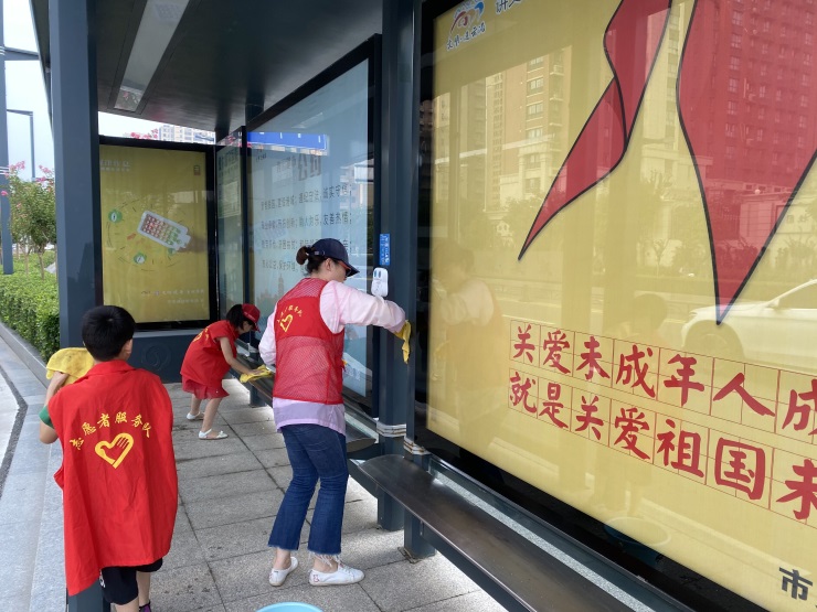 活動現(xiàn)場,大家利用水桶、抹布、鏟子等清潔工具,分工明確,合力對周邊各公共站點和主要路段護欄進行仔細擦拭,并清掃了公交站點附近的果皮、紙屑、塑料袋等垃圾,以實際行動為我市創(chuàng)文工作盡綿薄之力。值得一提的是參加本次活動的小朋友們,他們積極參與清掃活動,展現(xiàn)了不怕臟,不怕苦,齊心協(xié)力的精神,成為了本次活動最亮麗的風景線。經(jīng)過緊張有序的工作,被志愿者們擦洗過的公交站臺煥然一新,以嶄新的面貌展現(xiàn)在市民面前。