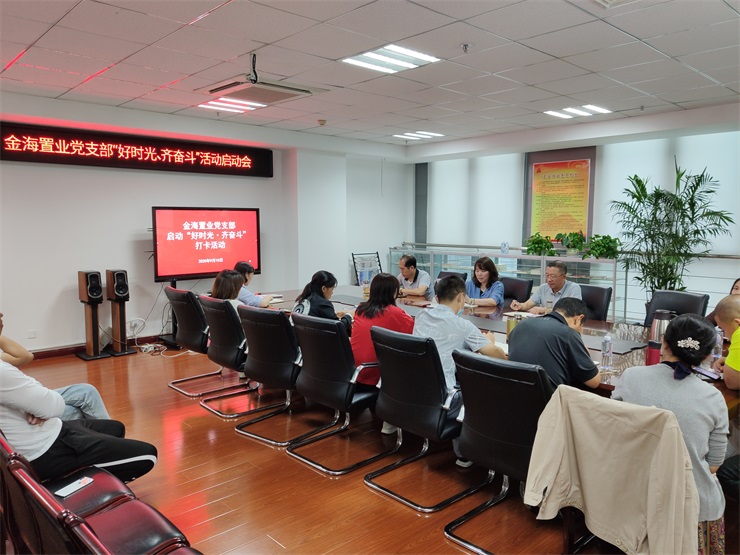 9月10日下午,金海置業(yè)黨支部召開了“好時光·齊奮斗”活動啟動會,會議要求每位黨員每天上午9:00之前,在微信群完成打卡,圍繞崗位目標任務,發(fā)表自己的感悟和想法,為“大干一百天”曬承諾、亮承諾。