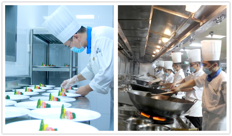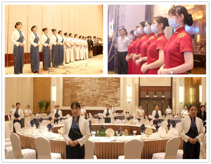 酒店各部門員工根據(jù)公司工作部署并肩作戰(zhàn)、團(tuán)結(jié)協(xié)作,不僅工作節(jié)奏快、效率高,而且對(duì)服務(wù)細(xì)節(jié)高標(biāo)準(zhǔn)、嚴(yán)要求。酒店在各服務(wù)區(qū)域內(nèi)設(shè)置服務(wù)臺(tái),提供口罩、酒精濕巾等防疫物資,客房里為每個(gè)城市參會(huì)嘉賓設(shè)計(jì)各自蘊(yùn)涵城市特色的歡迎信,并提供個(gè)性化夜床服務(wù),為嘉賓們提供“溫馨如家”“滿意加驚喜”的人性化服務(wù);菜單設(shè)計(jì)突出港城風(fēng)味特色,兼顧其他菜系的特色菜品,菜品采購(gòu)做好各項(xiàng)把關(guān),以確保菜品的安全、衛(wèi)生、營(yíng)養(yǎng)和美味。
