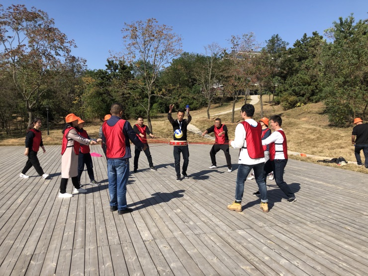 本次拓展訓練在輕松愉快的小游戲中拉開序幕,讓大家放松了心情。隨后參加活動人員在教練的組織下,分成2個團隊進行PK。在各自選出的隊長的帶領下,各隊隊員集思廣益,分工協(xié)作,起隊名、選隊歌,畫隊旗,擺隊形,共同完成了團隊組建任務。在接下來的同心鼓、不倒森林等競賽項目中,更是讓大家親身體會到了團隊協(xié)作的重要性和所展示出來的強大力量,大家齊心協(xié)力,相互配合,共同迎接挑戰(zhàn)與考驗,出色地完成各個挑戰(zhàn)任務。