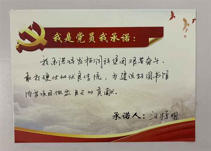 近日,潤科集團黨支部全體黨員紛紛亮出黨員身份,莊嚴的將自己的承諾卡曬到了承諾墻上。承諾卡內(nèi)容均是黨員同志依托各自崗位和全年目標任務(wù)為自己“量身定做”。通過亮身份、曬承諾,黨員同志們進一步明確了各自崗位職責,再一次梳理了年內(nèi)目標任務(wù)完成情況,在當前沖刺全年目標任務(wù)的緊要關(guān)頭,感受到了時間的緊迫,自覺吹響了“沖鋒”號角。