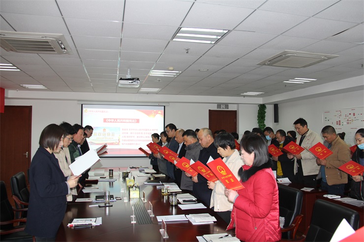 會(huì)上,蒼梧房開黨支部書記帶領(lǐng)全體干部職工宣讀誓詞,隨后共同學(xué)習(xí)了《憲法》序言。莊嚴(yán)的憲法宣誓儀式,對(duì)增強(qiáng)公司干部職工憲法意識(shí),推動(dòng)干部職工帶頭尊法、學(xué)法、守法、用法具有重要意義。